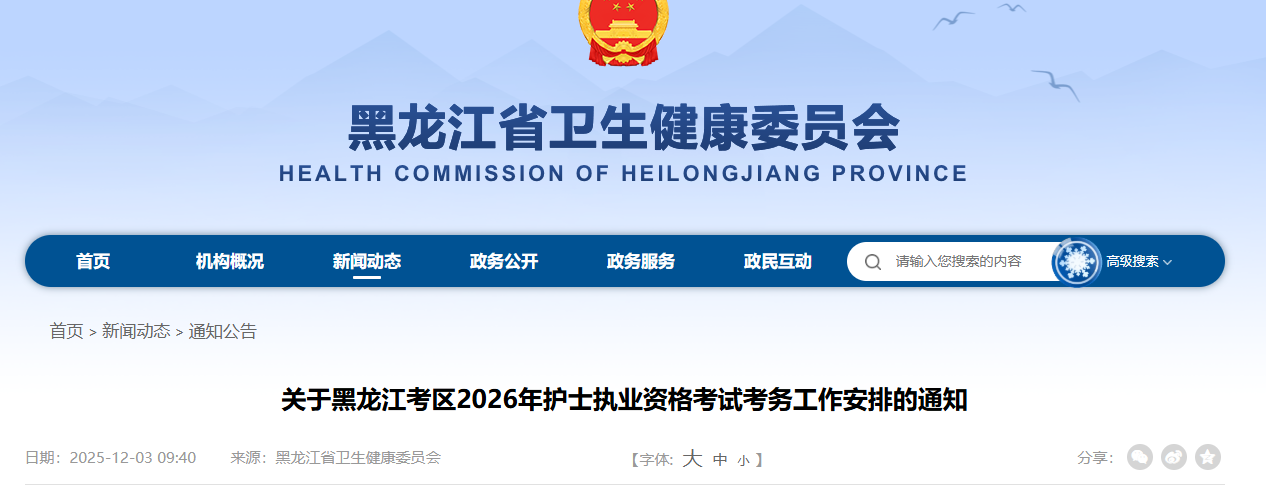 近日,黑龙江省卫生健康委员会正式发布《关于黑龙江考区 2026 年护士执业资格考试考务工作安排的通知》(黑卫医函〔2025〕107 号),明确了 2026 年黑龙江考区护士资格证考试的报名时间、流程及相关要求。为帮助考生高效筹备报考事宜,本文将梳理报名全流程关键信息,同时结合各地市补充通知,明确不同身份考生的注意事项。
