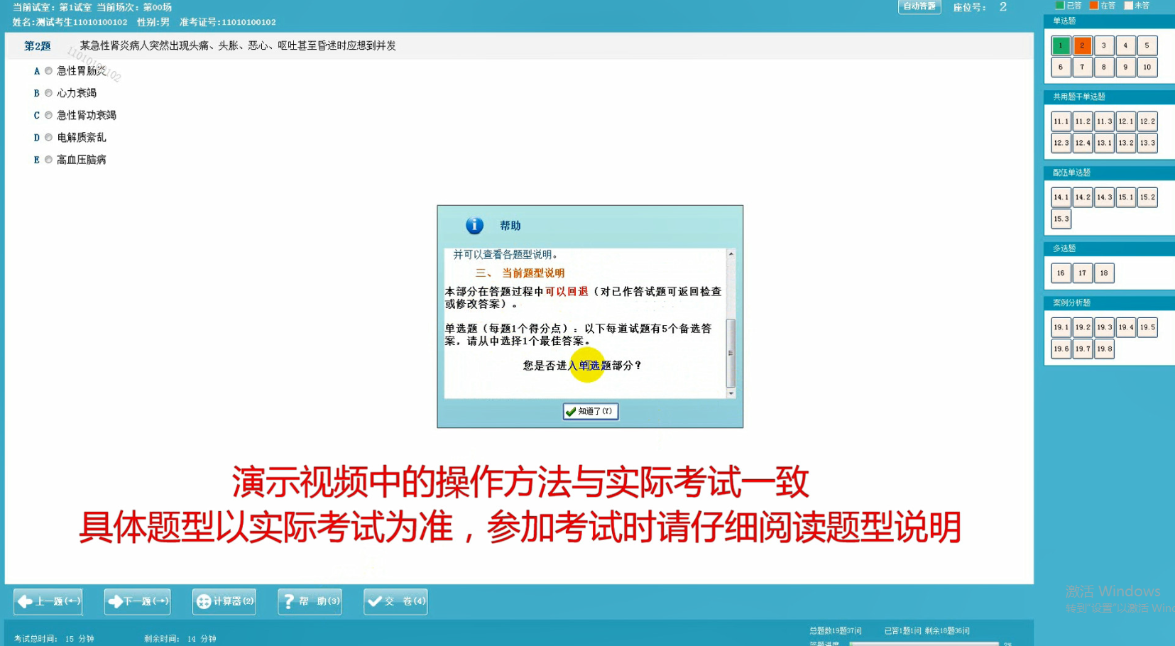 3. 其他疑问:若对题目显示、操作说明有疑问,可点击“帮助”按钮(或按键盘“3”键)查看操作说明和题型说明,不得询问与试题内容相关的问题,若仍有疑问,举手示意监考老师。
