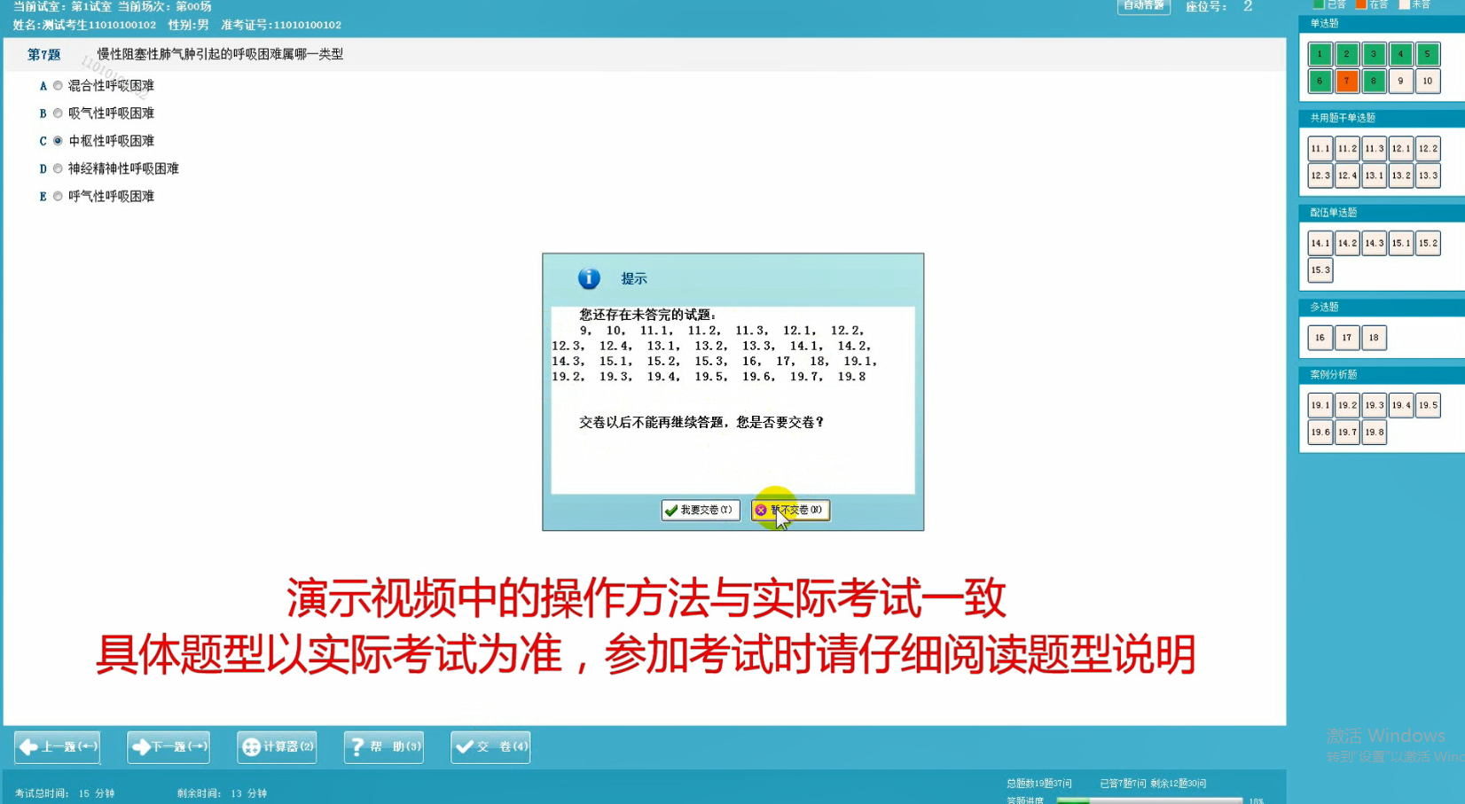 4. 题型注意:机考的核心规则是“不同题型之间操作不可逆”,例如从A1题型切换到A2题型后,将无法返回修改前一题型的答案;A3/A4型题(共用题干题、案例分析题)在同一题型内,进入下一题后也不可返回修改上一题答案,因此每道题作答时需认真确认,避免因操作不可逆造成失误。