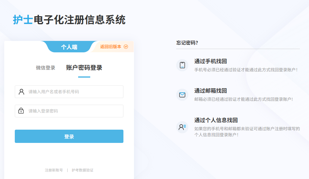 1. 登录系统:打开“国家卫生健康委电子化注册信息系统”,选择“护士电子化注册”个人端入口,登录个人账号(无账号需先注册绑定);也可登录当地政务服务网,搜索“护士执业注册(延续)”进入办理页面。